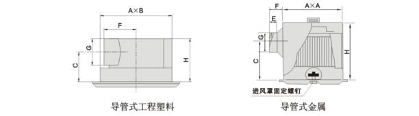 注:導管式金屬殼體通風器可根據用戶要求制成變風器(高、中、低三檔)。