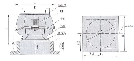 產品名稱: DWT-Ⅲ型低噪聲離心軸向式屋頂排風機