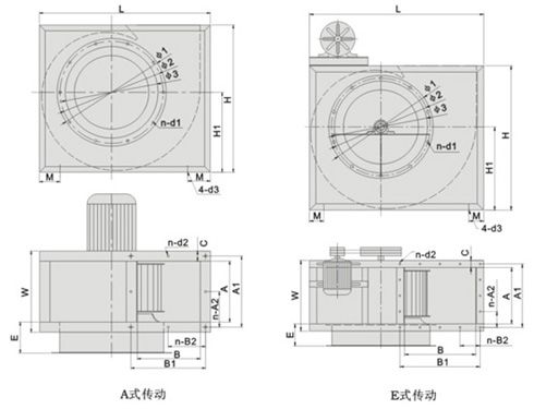 DDL-Ⅰ型風(fēng)機(jī)分A式直聯(lián)傳動(dòng)和E式皮帶傳動(dòng)兩種結(jié)構(gòu)型式,采用高效前傾多翼式離心葉輪,同一機(jī)號(hào)風(fēng)量耿大。配用防爆電機(jī)和鋁(不銹鋼)材質(zhì)葉輪,可制成防爆型。